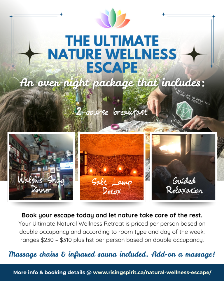 Book your escape today and let nature take care of the rest. Your Ultimate Natural Wellness Retreat is priced per person based on double occupancy and according to room type and day of the week: ranges $230 – $310 plus hst per person based on double occupancy